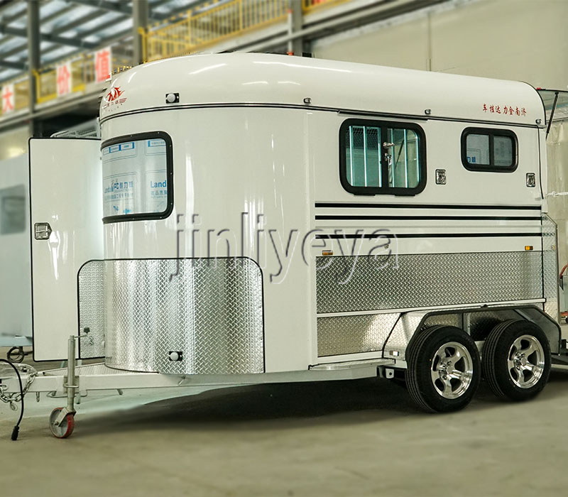 地板:地板一般采用防滑、耐磨且易于清洁的材料制成。防滑设计可防止马匹在运输过程中滑倒受伤;耐磨材料能承受马匹的体重和蹄部的摩擦;易于清洁的特性则便于在每次运输后对车厢进行彻底的清洗和消毒,保持车厢内部的卫生。